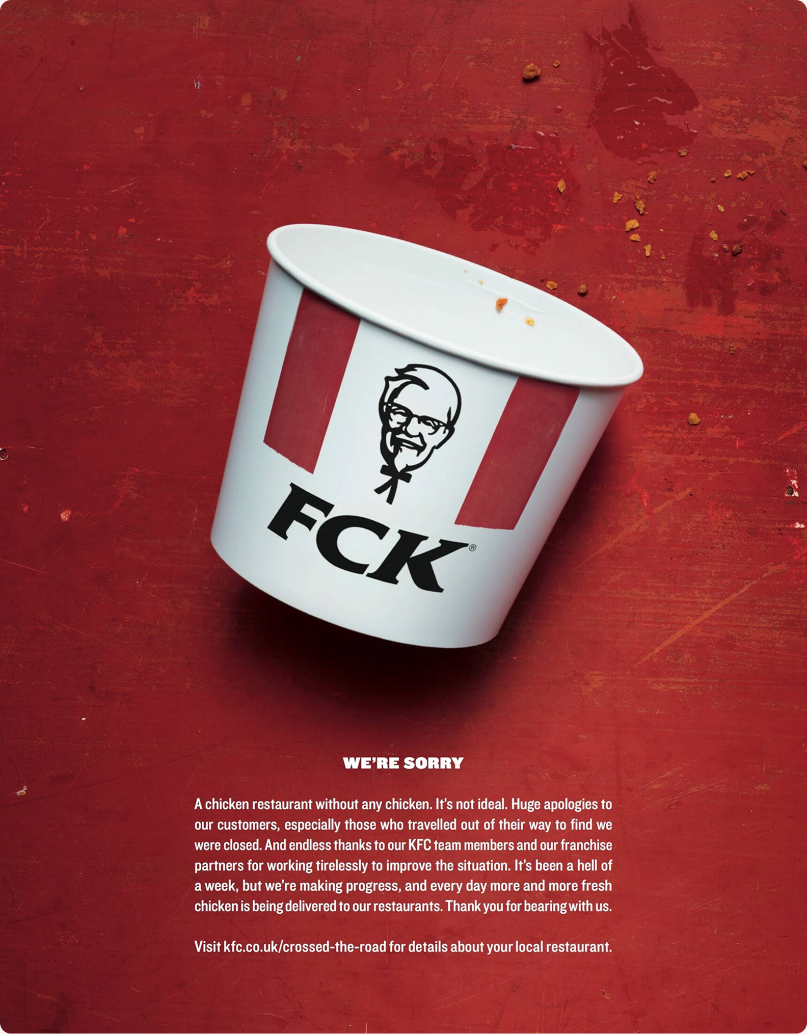 But then KFC did something unexpected. They took out the full-page ad shown below in major publications.