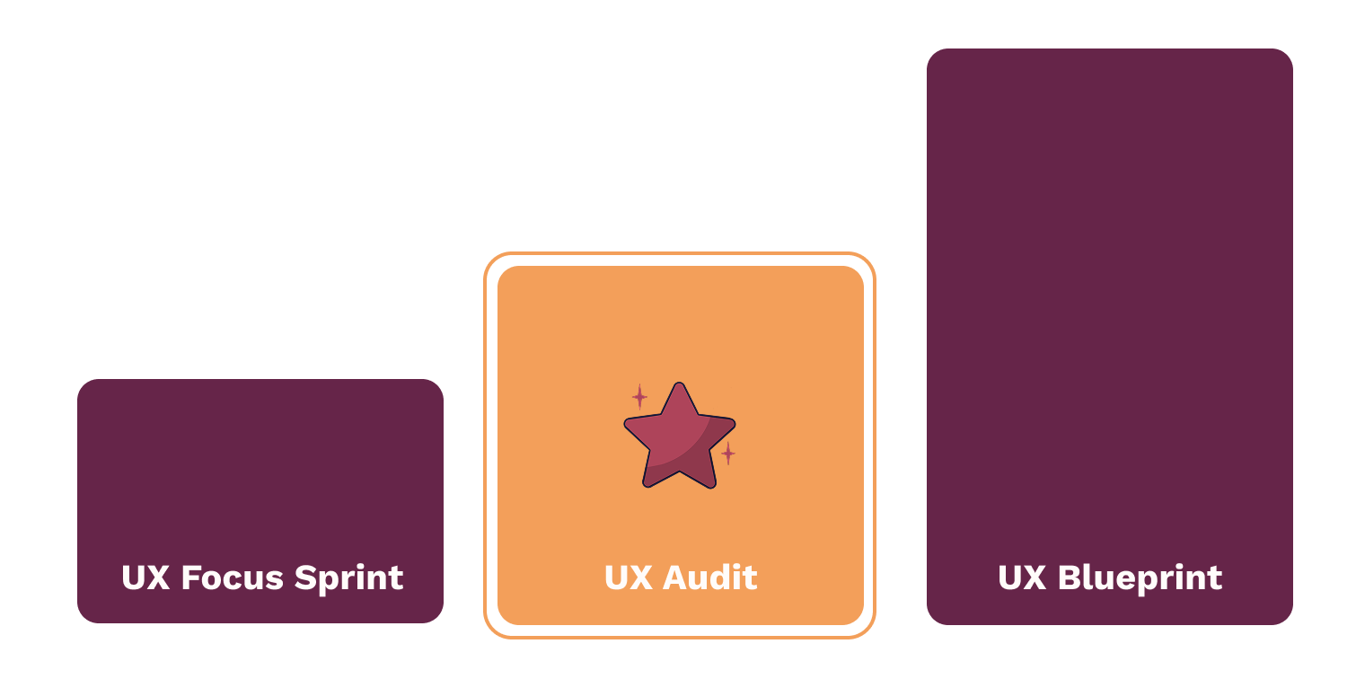 A UX Audit is our mid-tier UX offering. For more comprehensive UX services, UX Blueprint. For a lighter take, check out our UX Focus Sprint.